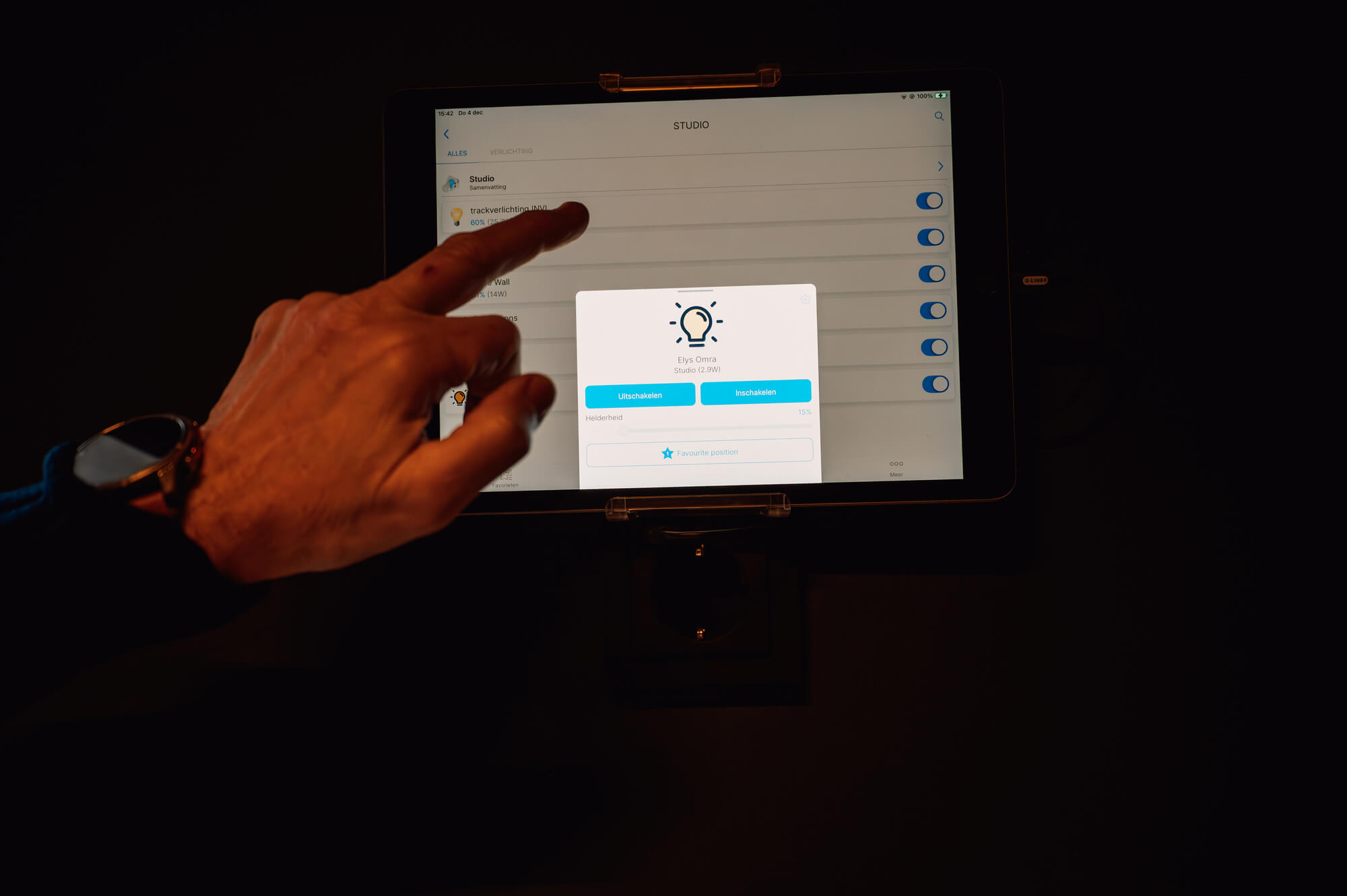 ’s Ochtends fris en helder, ’s avonds warm en zacht — allemaal met één druk op de knop of automatisch via een schema. De bediening kan via een klassieke drukknop, via de app of met slimme draadloze schakelaars die we subtiel integreren in het interieur.